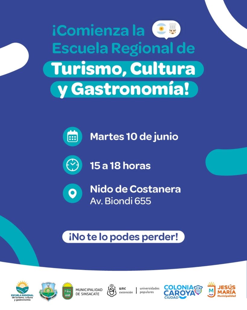 Posteriormente, habrá módulos específicos de Turismo, de Gastronomía y de Cultura. Las sedes irán rotando entre Jesús María, Colonia Caroya y Sinsacate.
