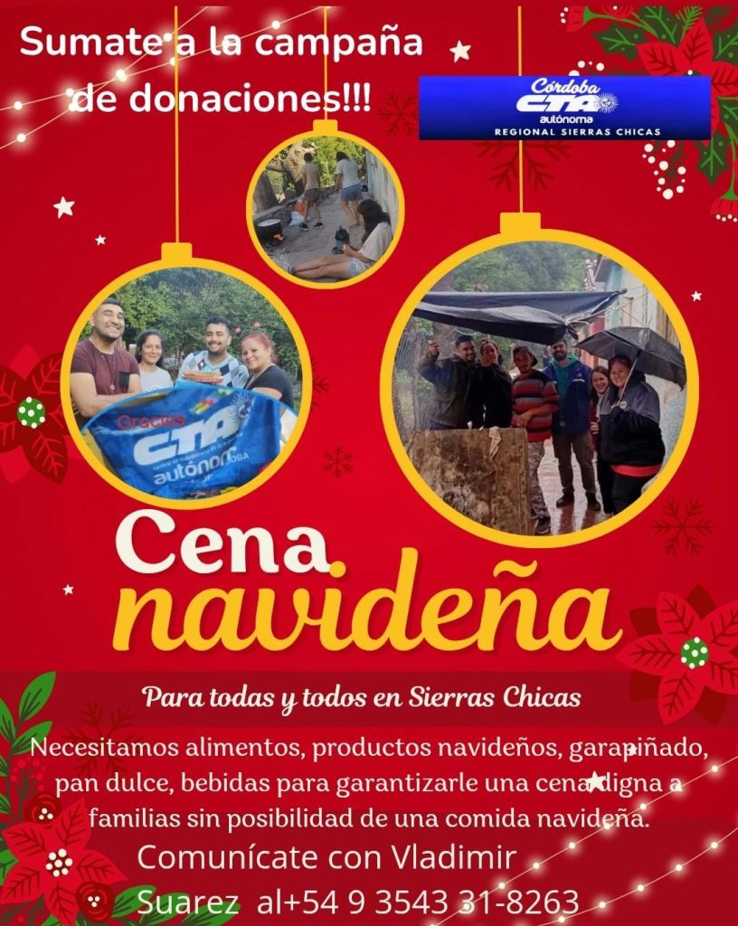 La iniciativa comenzó hace algunas semanas y está destinada a los merenderos con los que actualmente trabaja la CTA en el corredor de Sierras Chicas. “La idea es poder juntar productos navideños para repartirlos entre las familias de los merenderos. Pan dulce, budines, turrones, todo lo que permita que puedan disfrutar un poco más la Navidad”, explicó Suárez.