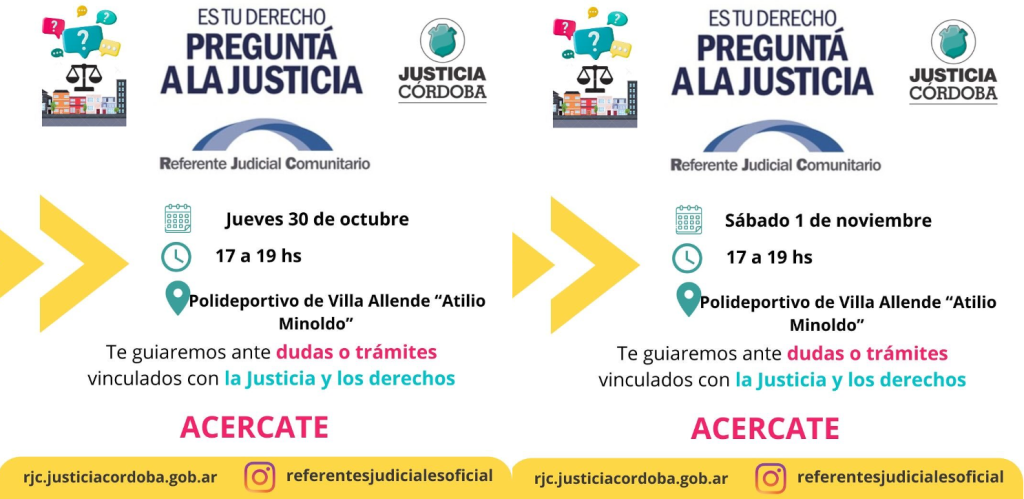 El Poder Judicial de Córdoba impulsa una nueva edición del programa “Referentes Judiciales Comunitarios”, una iniciativa que busca acercar la justicia a los ciudadanos a través de espacios de consulta y orientación gratuita. En Villa Allende, la propuesta estará a cargo de Agostina Cuello y Agostina Luna, trabajadoras del Poder Judicial e integrantes del equipo local.