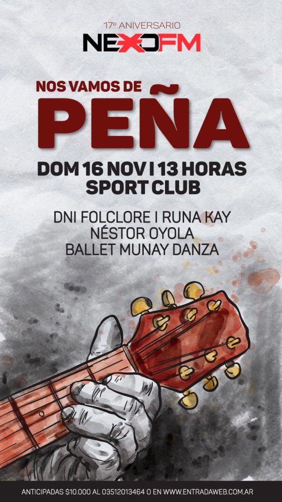 La Peña de los 17 años de Radio Nexo se realizará en el Sport Club, frente al Polideportivo de Villa Allende, con buffet, baile y shows en vivo.