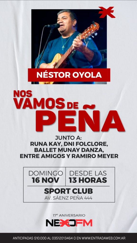 La Peña por los 17 años de Nexo FM promete una jornada con artistas locales, comida típica, baile, juegos y la calidez clásica de los encuentros que la radio realiza cada año. La propuesta apunta a disfrutar en familia, con un ambiente festivo y bien cordobés.